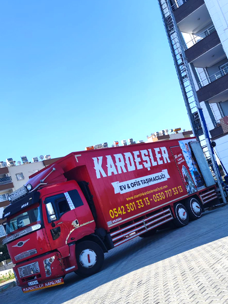 Mersin KardeÅŸler Nakliyat, evden eve nakliyat, ofis taşıma, asansörlü taşıma, sigortalı taşıma, depolama hizmetleri ve eÅŸyaların ambalajlanması gibi alanlarda profesyonel taşımacılık hizmetleri sunmaktadır.